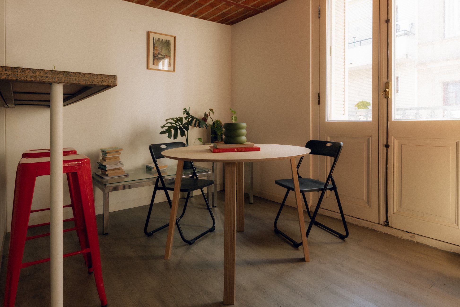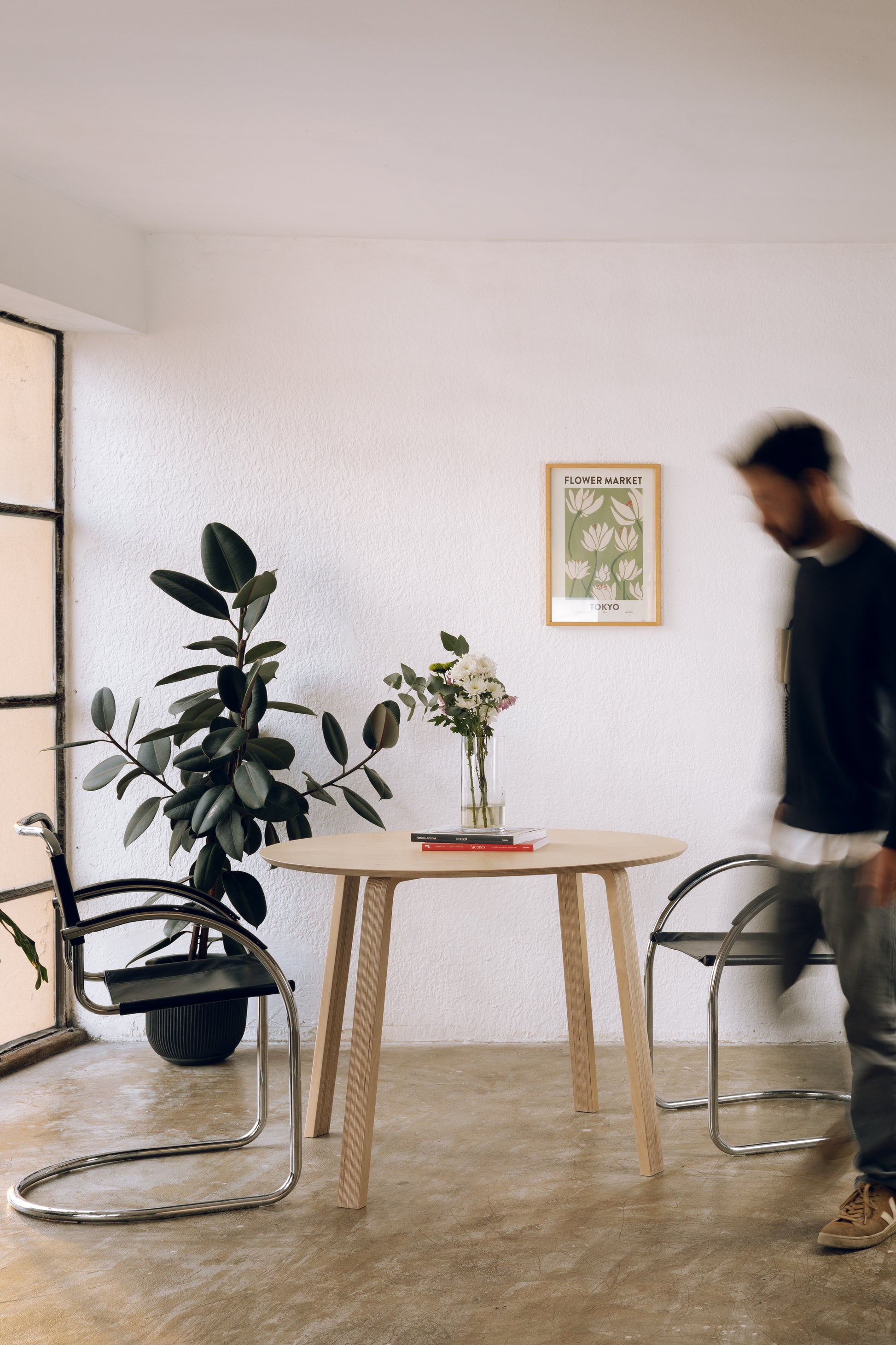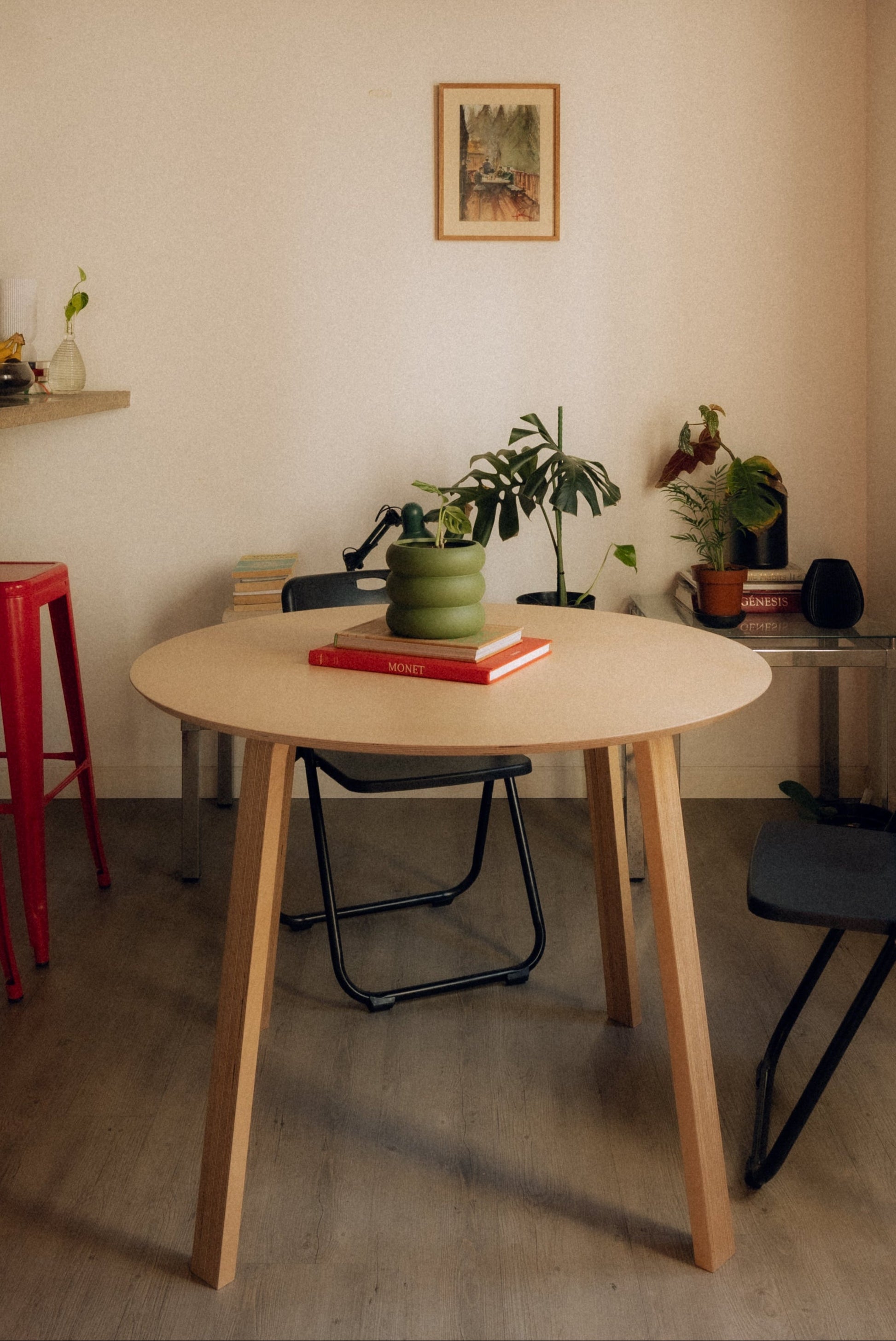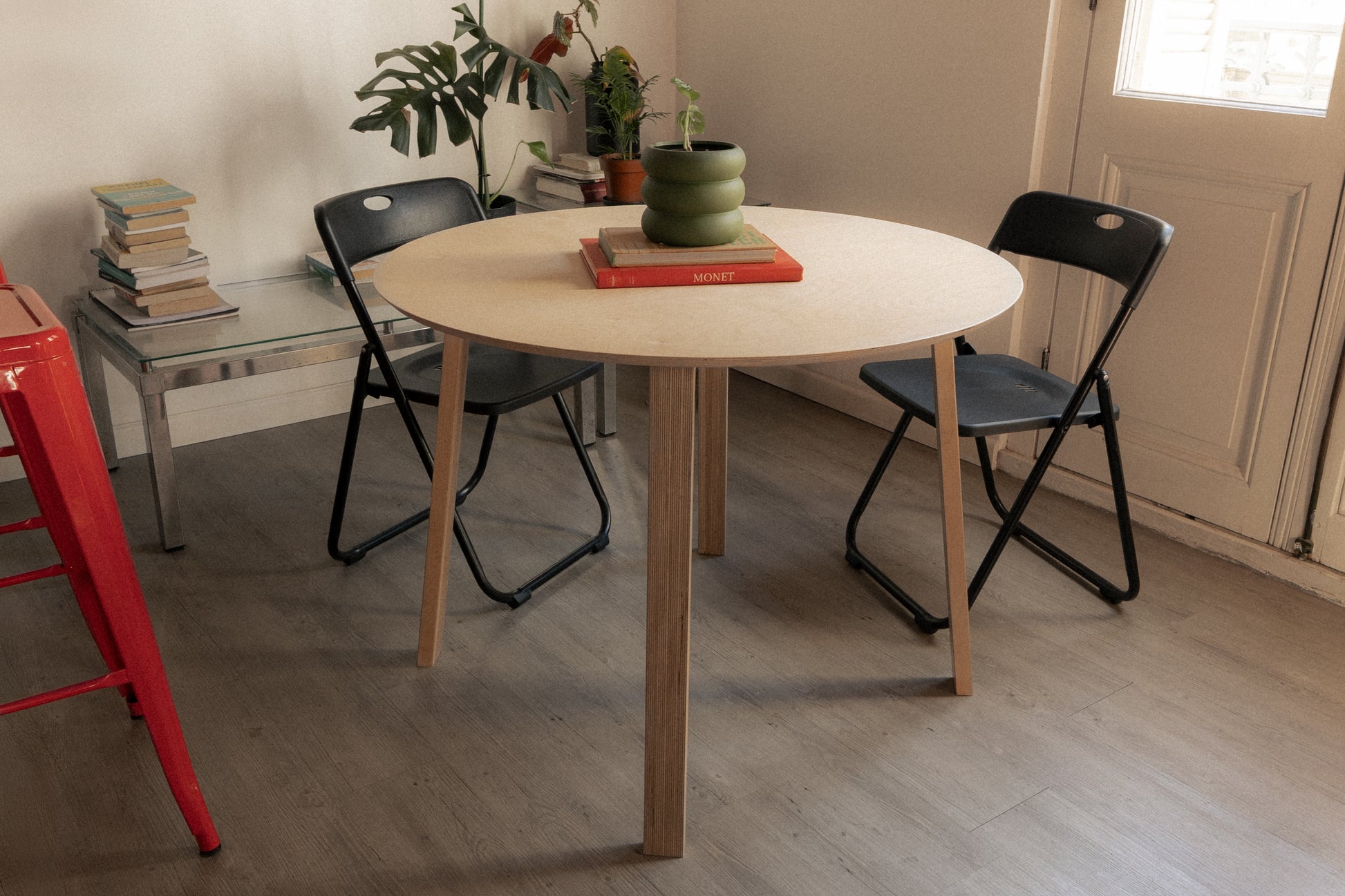 De líneas simples y proporciones equilibradas, la Mesa Runde XL aporta liviandad y calidez a cualquier espacio. Su formato redondo favorece la conversación y acomoda hasta 4 personas.